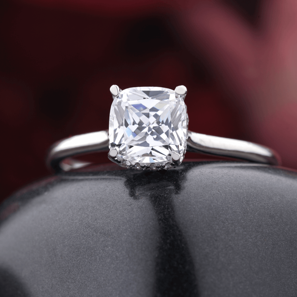 Cushion cut diamonds, also known as pillow-cut diamonds, feature rounded corners and larger facets. This classic cut has been popular for nearly 200 years. Modern cushion cuts offer a balance between antique charm and contemporary brilliance. They typically have 58 facets and can be found in square or slightly rectangular shapes. Cushion cuts are known for their fire (colored light dispersion) and are often less expensive than round brilliants of similar carat weight.