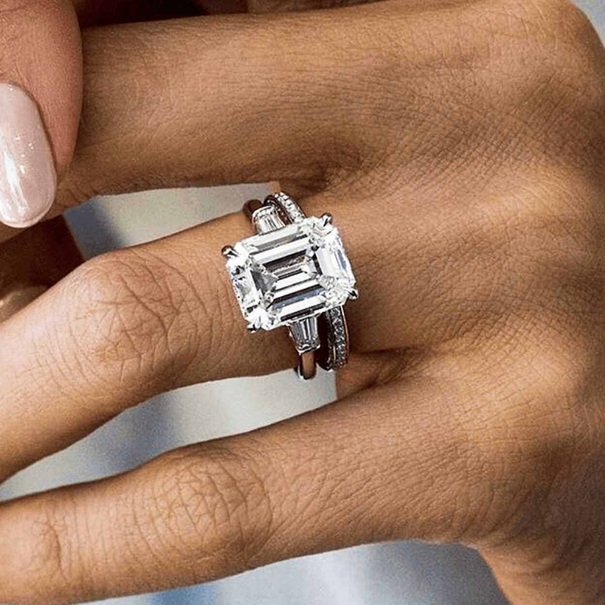Emerald cut diamonds feature a rectangular shape with step-cut facets, creating a unique "hall of mirrors" effect. They typically have 57 facets and are known for their elegance and vintage appeal. Emerald cuts tend to show more color and inclusions than other shapes, so higher clarity and color grades are often recommended. Their large table and step-cut facets make them less forgiving of flaws, but they can appear larger than other cuts of the same carat weight.
