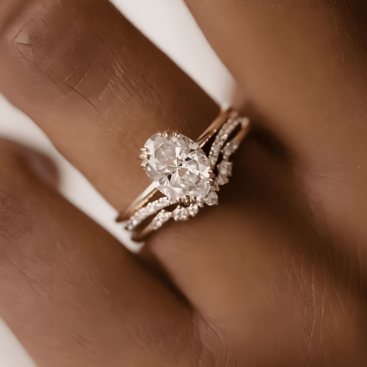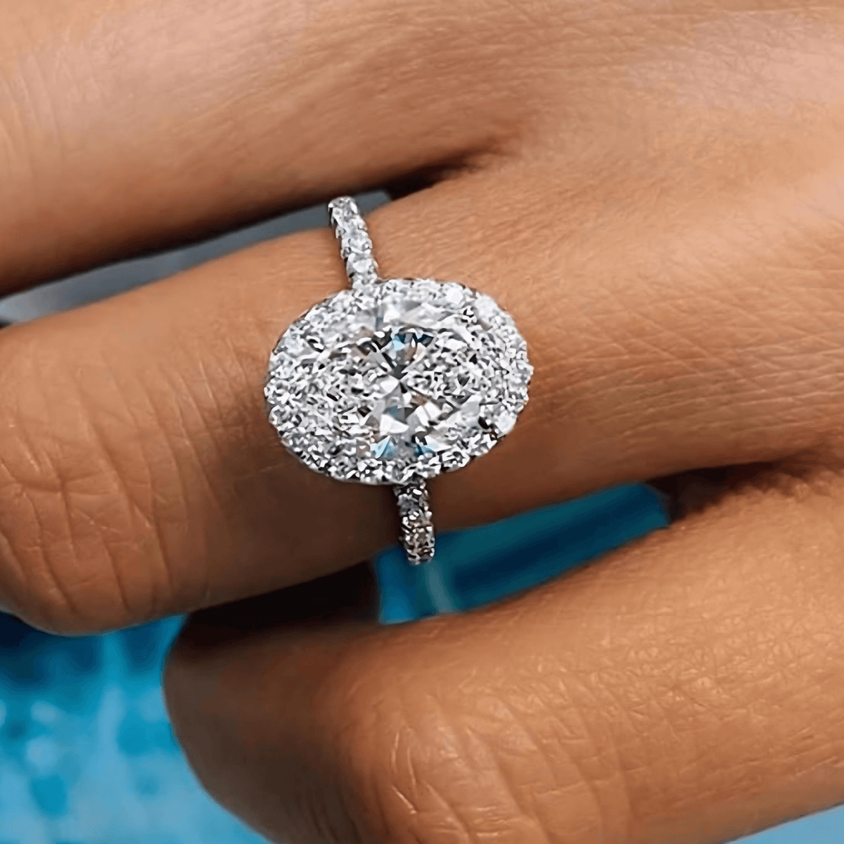 Oval cut diamonds combine the brilliance of round cuts with an elongated shape. Invented in the 1960s by Lazare Kaplan, oval cuts have 58 facets and offer excellent light performance. They can make fingers appear longer and slimmer, and often look larger than round diamonds of the same carat weight. Oval cuts may exhibit a "bow-tie" effect, a dark area in the center of the stone, which should be minimal in well-cut diamonds.