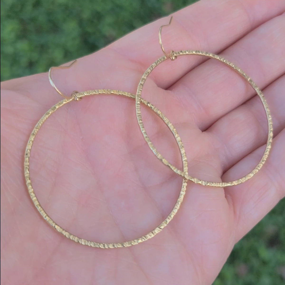 These imperfectly perfect hoops are more than just earrings – they're a statement of sophistication and conscious style. The carefully crafted texture not only provides an organic aesthetic but also enhances the earrings' ability to catch and reflect light, ensuring you'll sparkle from every angle. Durable yet lightweight, these hoops are designed for comfort and longevity. Whether you're dressing up for a night out or adding a touch of elegance to your daily look, these earrings are the ideal finishing touch. Gift these timeless pieces to yourself or a loved one, and enjoy the perfect blend of classic style and modern sustainability.